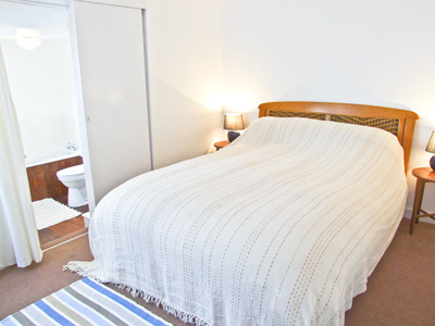 To the right of the sitting room area there is an en-suite Double bedroom and bathroom - the bathroom has a bath, sink and toilet. The bedroom has a 4'6" Double Bed, scrubbed pine chest of drawers and two side tables with lamps.